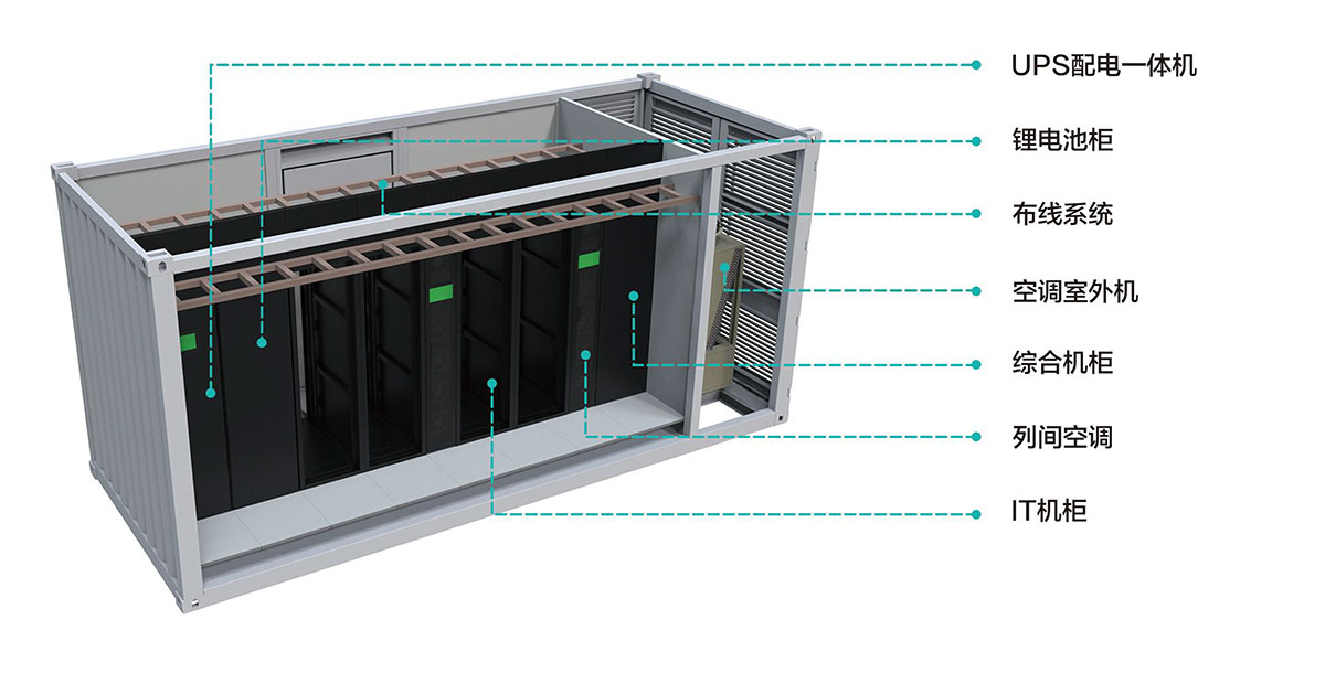 □ 一体化设计,集成动力、IT机柜、制冷设备、动环监控等全部设备